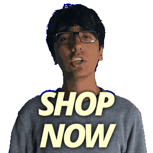 a man wearing glasses says shop now