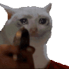 An animated sticker featuring a sad, crying white cat with a gun pointed in the foreground, capturing the popular meme.