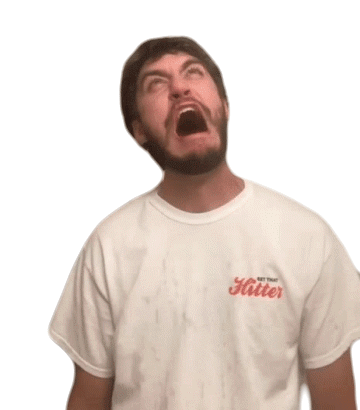Casey Frey shouting and screaming with his mouth wide open, looking upwards in an expressive, intense moment.