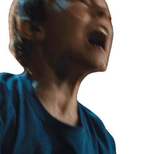 A young boy from the movie Speak No Evil screams intensely, mouth wide open, wearing a blue shirt.