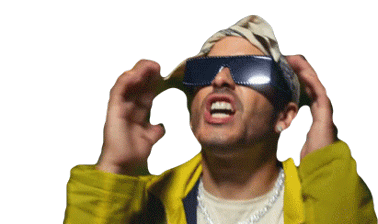 Yandel passionately shouts or sings, looking up with hands near his head, embodying the energy of an Eva Song performance.