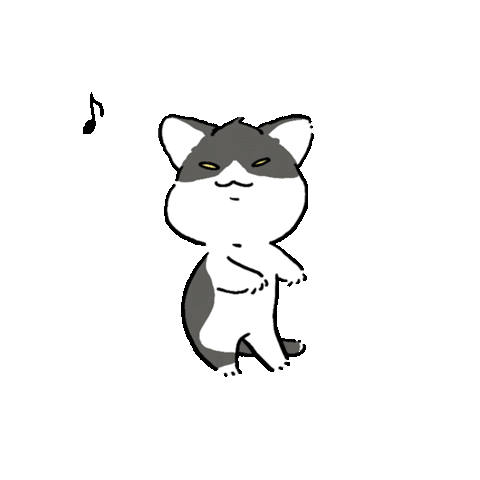 A cute black and white cat stands on its hind legs, dancing playfully with a music note floating above its head.
