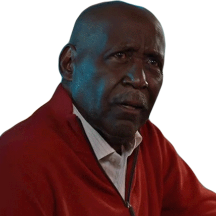 Ellis Shaw, portrayed by Richard Roundtree, shrugs with an 'I don't know' expression, wearing a red jacket.