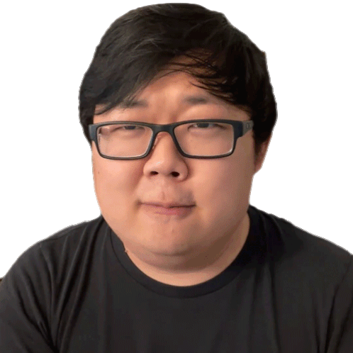 Sungwon Cho, wearing glasses and a black shirt, makes a 'beats me' or 'I don't know' expression with a slight shrug.
