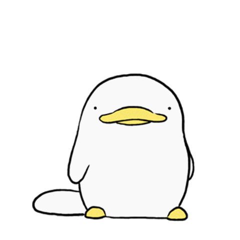 A cute, white duck-like character shrugs with raised arms, expressing confusion with question marks above its head.