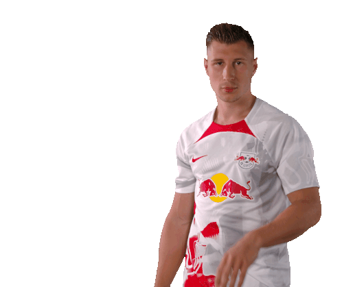 Willi Orban of RB Leipzig makes a dismissive hand gesture, shrugging off something with a confident smirk while wearing his team jersey.