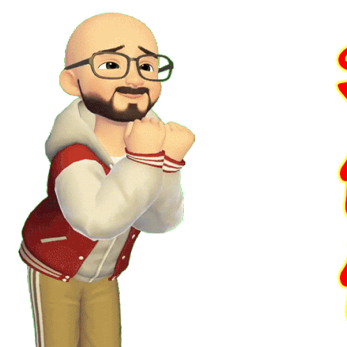 Shum Sir, a bald cartoon character, makes a cute, shy pose with Chinese text meaning 'I'm silly'.