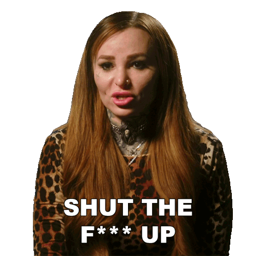 Sydney from Ink Master delivers a blunt 'Shut The F*** Up!' message, perfect for expressing strong disapproval or annoyance.