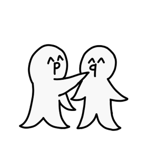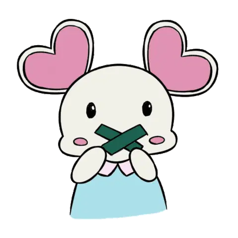 A cute cartoon character shushes another by covering its mouth, conveying a message to keep a secret or be quiet.