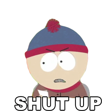 Stan Marsh from South Park, looking angry and annoyed, tells someone to 'Shut Up' in this expressive animated sticker.