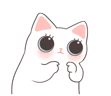 a drawing of a white cat with big blue eyes and pink cheeks