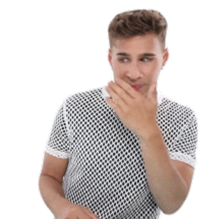 Brad Mondo, wearing a mesh shirt, covers his mouth with his hand, looking shy and uncomfortable.