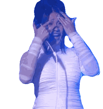 Cardi B expresses shyness and nervousness, covering her eyes and face with her hands in a cute reaction.