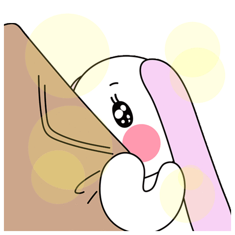 A cute animated bunny with pink cheeks and sparkly eyes shows a shy, modest smile while peeking.