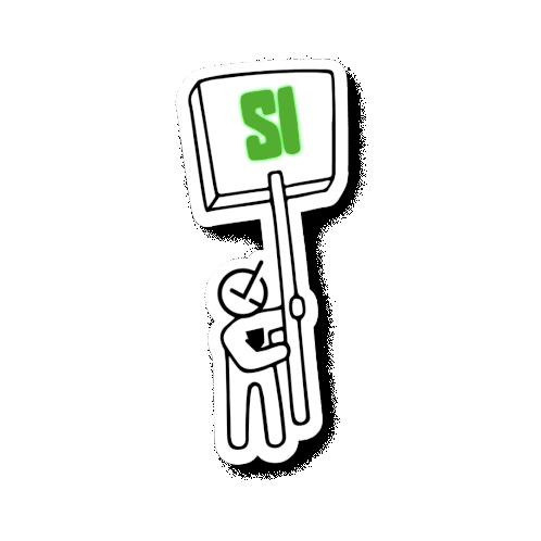 A stick figure man holds up a sign glowing with the word 'SI' (Yes), indicating strong affirmation or agreement.