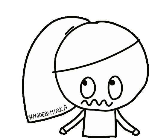 A cartoon girl with a ponytail shows an annoyed and worried expression, sighing in frustration, with a #MADEBYMINKA signature.