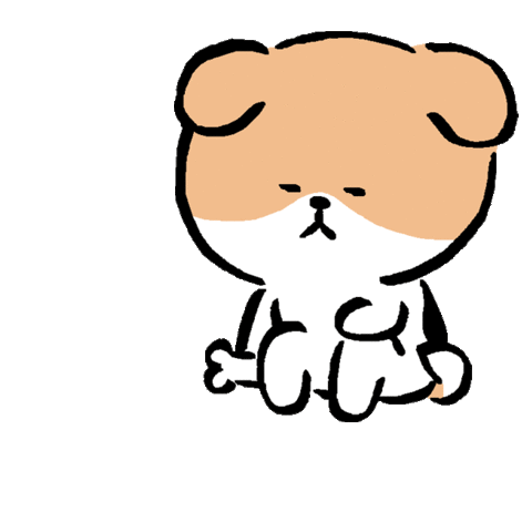 A cute cartoon dog sits sadly next to a bone, looking disappointed or sighing with a melancholic expression.