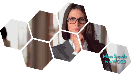 Dynamic sticker showcasing lab chemicals, supplies, and equipment, featuring MilliporeSigma, Mass Supply, and deep discount inventory.