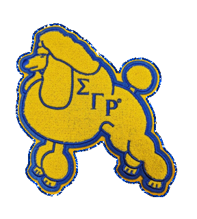 Vibrant yellow and blue Sigma Gamma Rho poodle sticker with Greek letters ΣΓΡ.