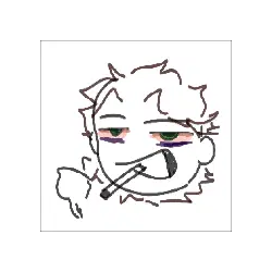 Pixel art anime girl with pastel hair and sailor uniform winks and makes a peace sign.