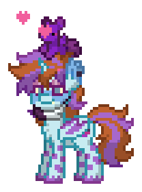Silly pixel art Ranboo-themed pony winks, with a small purple creature and heart on its head.
