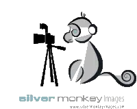A silver monkey holding a camera and taking a picture, representing Silvermonkeyimages photographer.