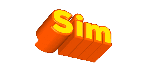 An animated 3D rendering of the word 'Sim' in vibrant orange and yellow, conveying affirmation.