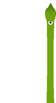 a cartoon illustration of a green asparagus with a white eye