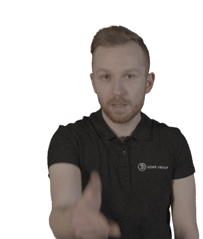 a man with a beard wearing a black shirt that says ' acorn group ' on it