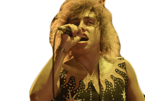 Josh Kiszka, lead singer of Greta Van Fleet, passionately sings into a microphone, hitting high notes during a live performance.