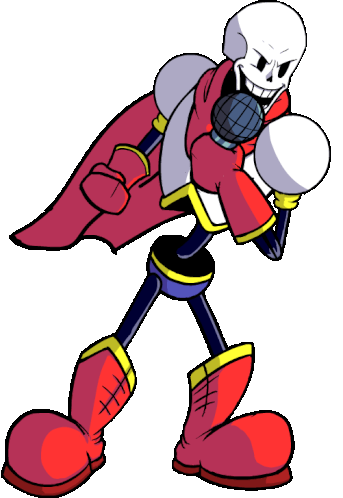 papyrus from undertale is holding a microphone and wearing boxing gloves and boots .