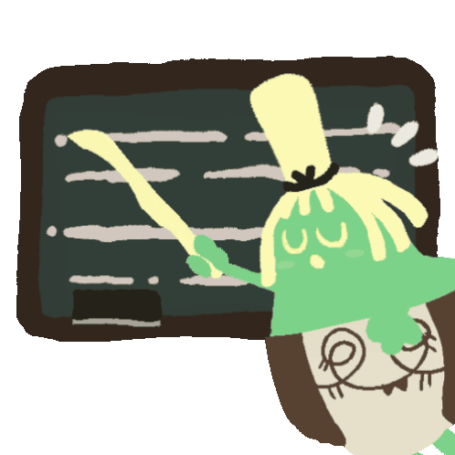 Sinistcha, the Matcha Pokémon, points at a chalkboard, appearing to teach or explain something with a calm expression.