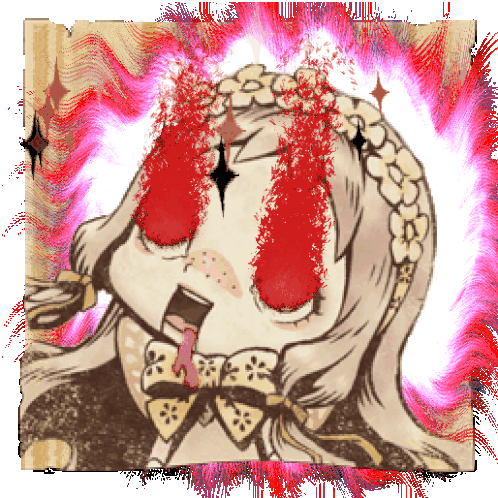 Sinoalice Parrah in shock, with blood streaming from her eyes, expressing extreme distress or surprise.