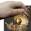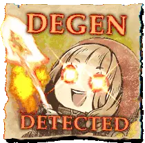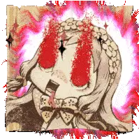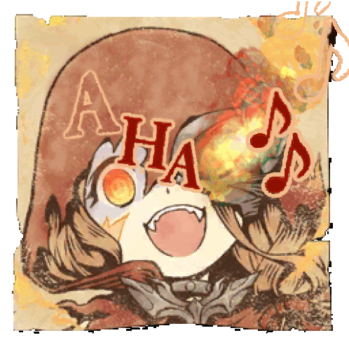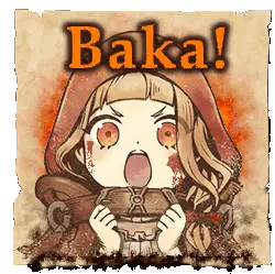 Red Riding Hood from Sinoalice laughs intensely with "HA" text and fiery musical notes.