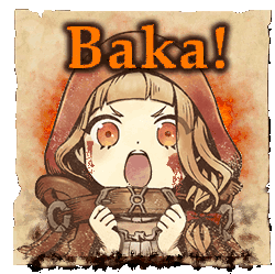 Sinoalice Red Riding Hood, with a fierce expression, yells 'Baka!' in this animated sticker from the game.