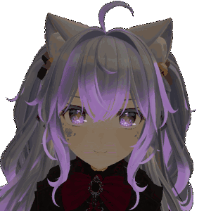 Sisisi Xxmineboxx, a charming VTuber girl with purple hair and cat ears, animated with a gentle smile and sparkling eyes.