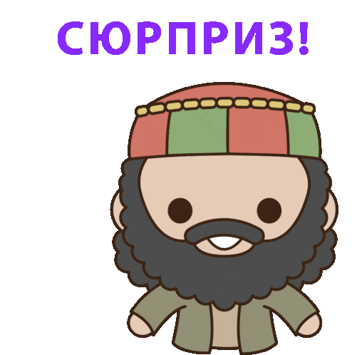 Bassim Nasir from MIB reveals a surprise alien creature with the text "СЮРПРИЗ!".