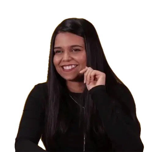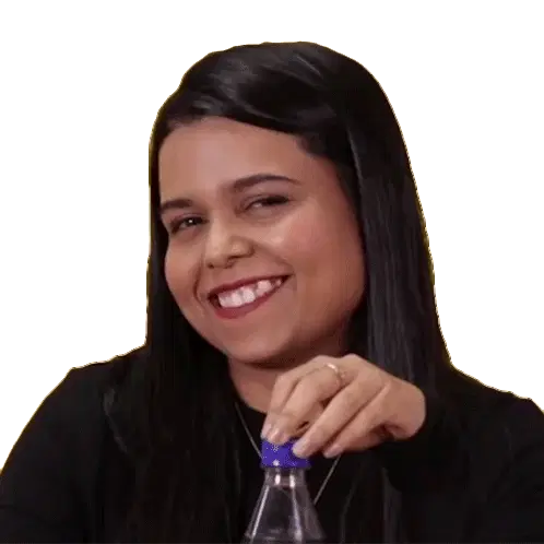 Aishwarya from Buzzfeed India reacts to 'Size Doesn't Matter' with a smile and a shy glance, conveying a playful message.