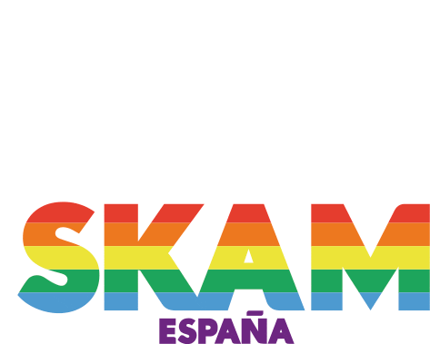 The 'SKAM ESPAÑA' logo in vibrant rainbow colors, celebrating Pride and the popular Spanish series.