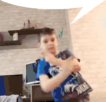 a young boy wearing a blue shirt that says walgreens is dancing in a living room .