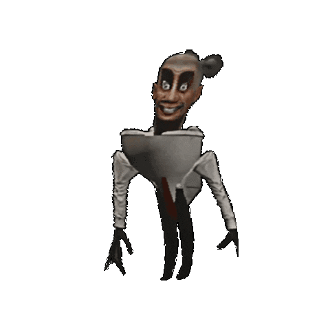A bizarre, smiling Skibidi Toilet character with a bun and a red tie, often seen in the popular meme series.