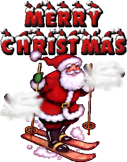 Santa Claus glides down a snowy slope, spreading holiday cheer with a 'Merry Christmas' message. Perfect for festive greetings.