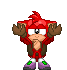 A pixel art Sonic OC character, a fox with red fur and purple shoes, performs a lively skip dance.