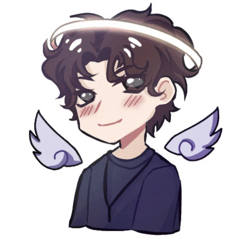 a drawing of a boy with angel wings and a halo