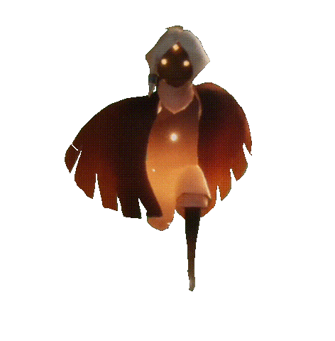 An animated pixel art sticker of a Sky: Children of the Light 'Moth' character with a cape and hat.