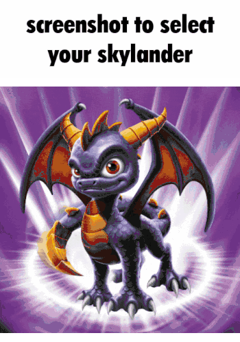 Cycle through various Skylanders characters like Ignitor and Spyro; screenshot to randomly select your next adventure companion.