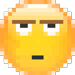 A pixelated yellow emoji with a dull, bored, and unimpressed expression, featuring half-closed eyes and a straight mouth.