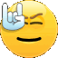 An animated Skype sticker featuring a cheerful yellow smiley face making a 'rock on' hand gesture. Expresses enthusiasm and cool vibes.