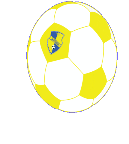 A rotating yellow and white football featuring the Skzitavany Iskra club emblem, perfect for sports fans.