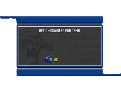 a screen that says option disabled for demo and a button that says ok